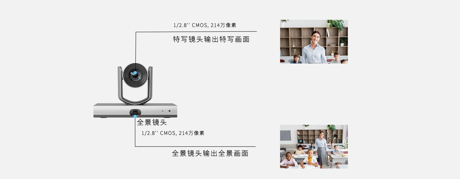 LTC系列1080P高清智能跟蹤攝像機(jī),采用先進(jìn)的教師跟蹤算法和學(xué)生定位算法,持續(xù)跟蹤和實(shí)時(shí)定位,支持雙路畫面同時(shí)輸出,全景鏡頭和特寫鏡頭最高可同時(shí)輸出1080P60視頻畫面,滿足各種教學(xué)場景需要。