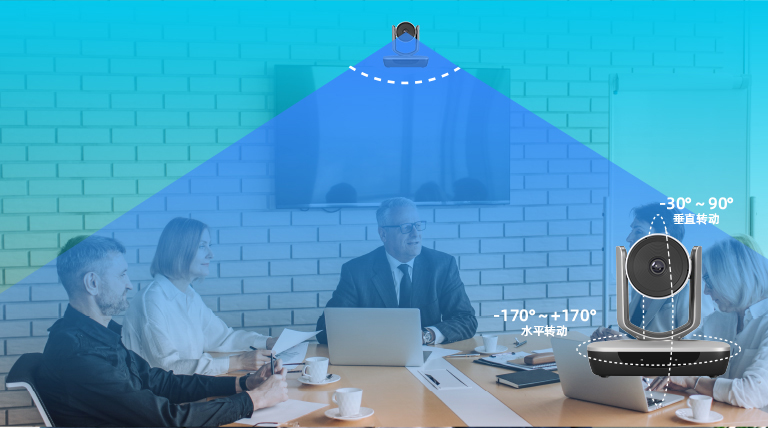340°水平云臺(tái)轉(zhuǎn)動(dòng)120度垂直云臺(tái)轉(zhuǎn)動(dòng)大廣角搭配靜音云臺(tái),實(shí)現(xiàn)會(huì)議可視區(qū)全覆蓋,暢享會(huì)議不受限。