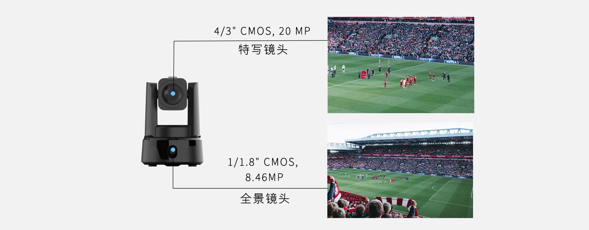 攝像機(jī)配置4/3英寸高端CMOS傳感器,呈現(xiàn)專業(yè)級的圖像細(xì)節(jié)和色彩,雙目設(shè)計可同時輸出全景和特寫4KP60雙路畫面。20倍光學(xué)變焦,最大水平視角可達(dá)71°,支持12G-SDI和3G-SDI同時輸出畫面,同步進(jìn)行視頻采集和監(jiān)看。