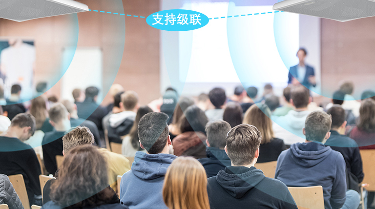 吊頂麥克風(fēng)支持多臺級聯(lián),且擁有豐富的模擬和數(shù)字音頻接口,支持接入無線麥,使用時無需另外搭配音頻處理器,麥克風(fēng)系統(tǒng)管理簡潔靈活,并且提供紅外、485、網(wǎng)絡(luò)等多種外部控制方式。
