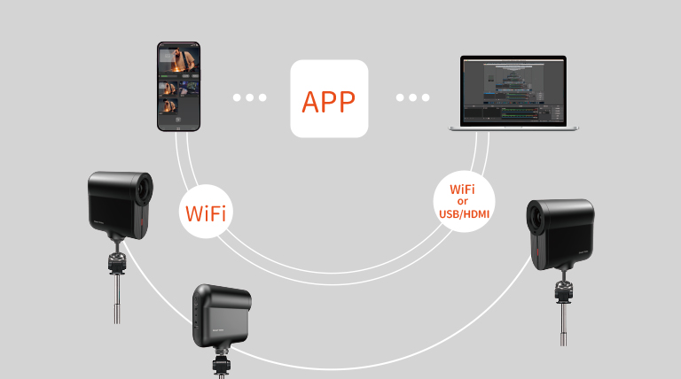 有線/無(wú)線連接電腦可以與手機(jī)應(yīng)用程序進(jìn)行無(wú)線連接,實(shí)現(xiàn)視頻預(yù)覽、多攝像頭切換、相機(jī)控制等功能,電腦端支持多種直播平臺(tái)